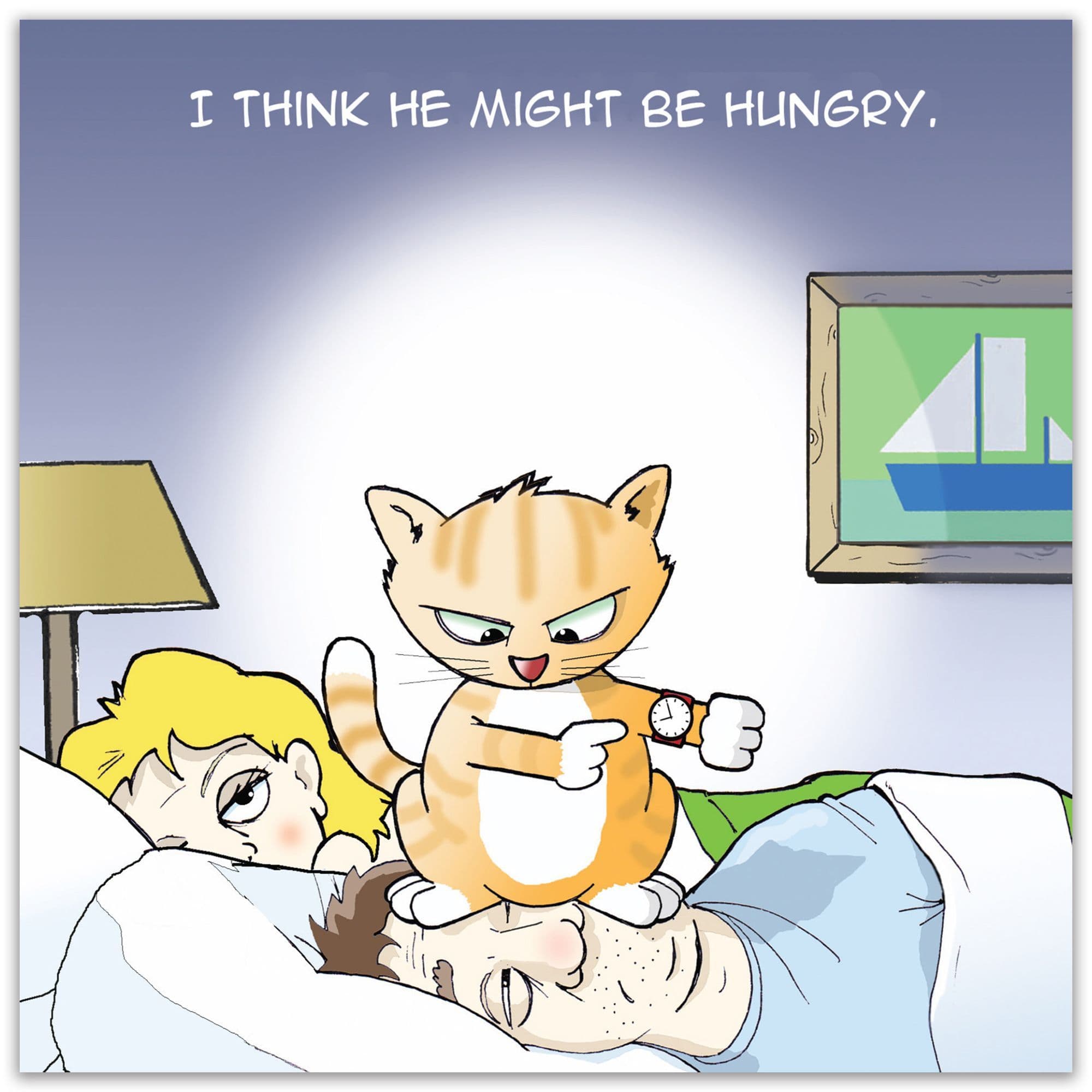 This funny card features a very hungry cat and the cat is not afraid to make it known! No such thing as lie in if you are a cat owner! This card is perfect for any cat lover. As it is blank inside it is suitable for a Birthday Card, New Home Card or even Anniversary Card.